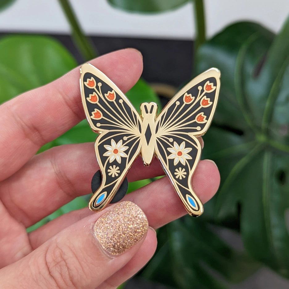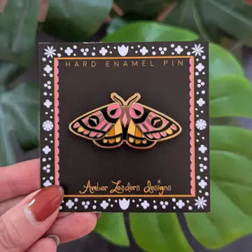 Mid-Century Modern inspired enamel pins by Amber Leaders. Drawing inspiration from this design style by incorporating simple shapes and bold colors often found in the Mid-Century Modern era. She is passionate about creating a joyful feeling of “nostalgia” with a modern twist.