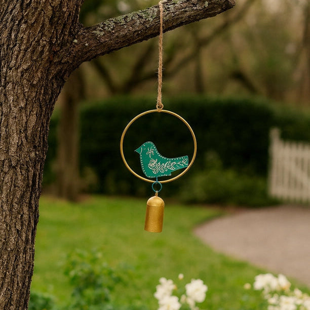 Henna Treasure Bird Wind Spinner Bell Chime - Hand Painted