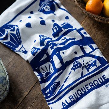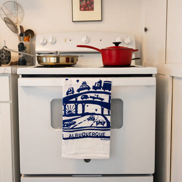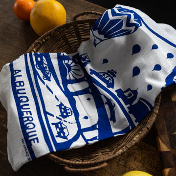 We have been told that it is the most photographed event in the world! We think this may be true because all of those bright colors against our deep blue New Mexico sky are well worth remembering! And a flour sack dish towel to help you remember the uniqueness of our city is a great gift for yourself or for a friend!