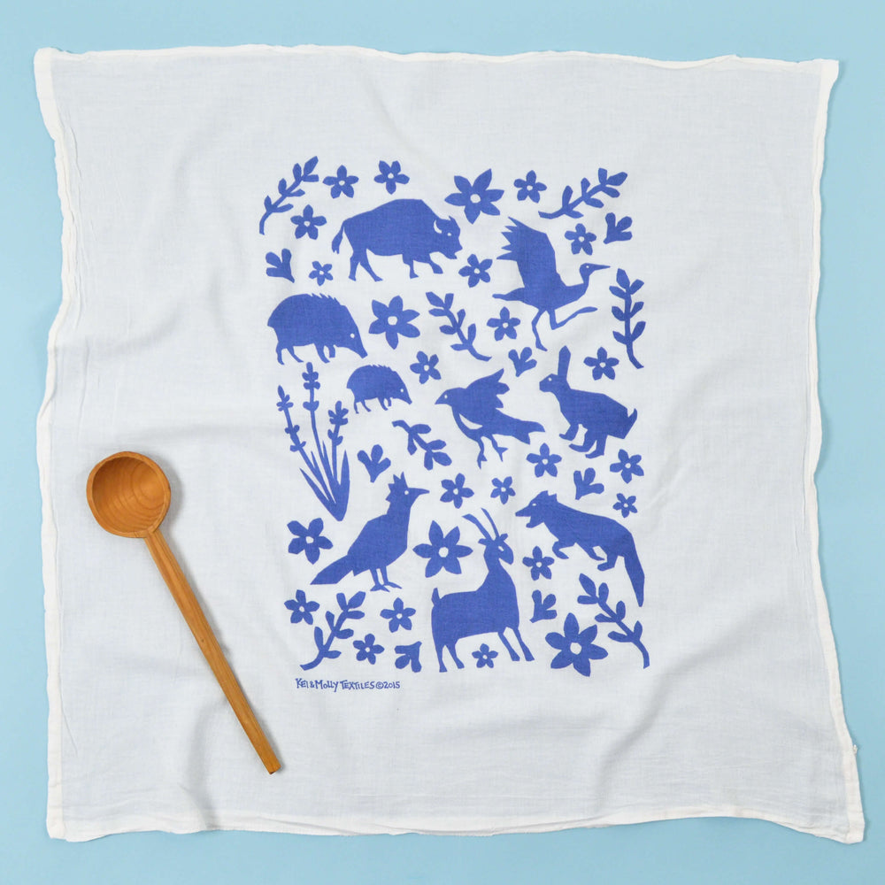 This hand-printed flour sack dish towel shows all of our local animals and makes a wonderful gift for any animal lover!