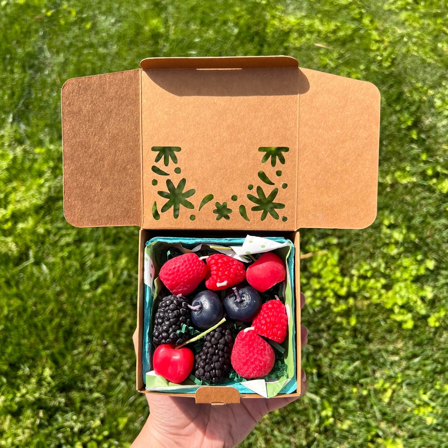 A sweet twist on birthday tradition, this set includes ten miniature fruit-shaped candlesโtwo each of strawberry, blueberry, blackberry, cherry, and raspberry. Each one is handcrafted from 100% beeswax and designed to resemble real berries, using molds made from produce sourced at our family farm, local markets, and grocery stores.